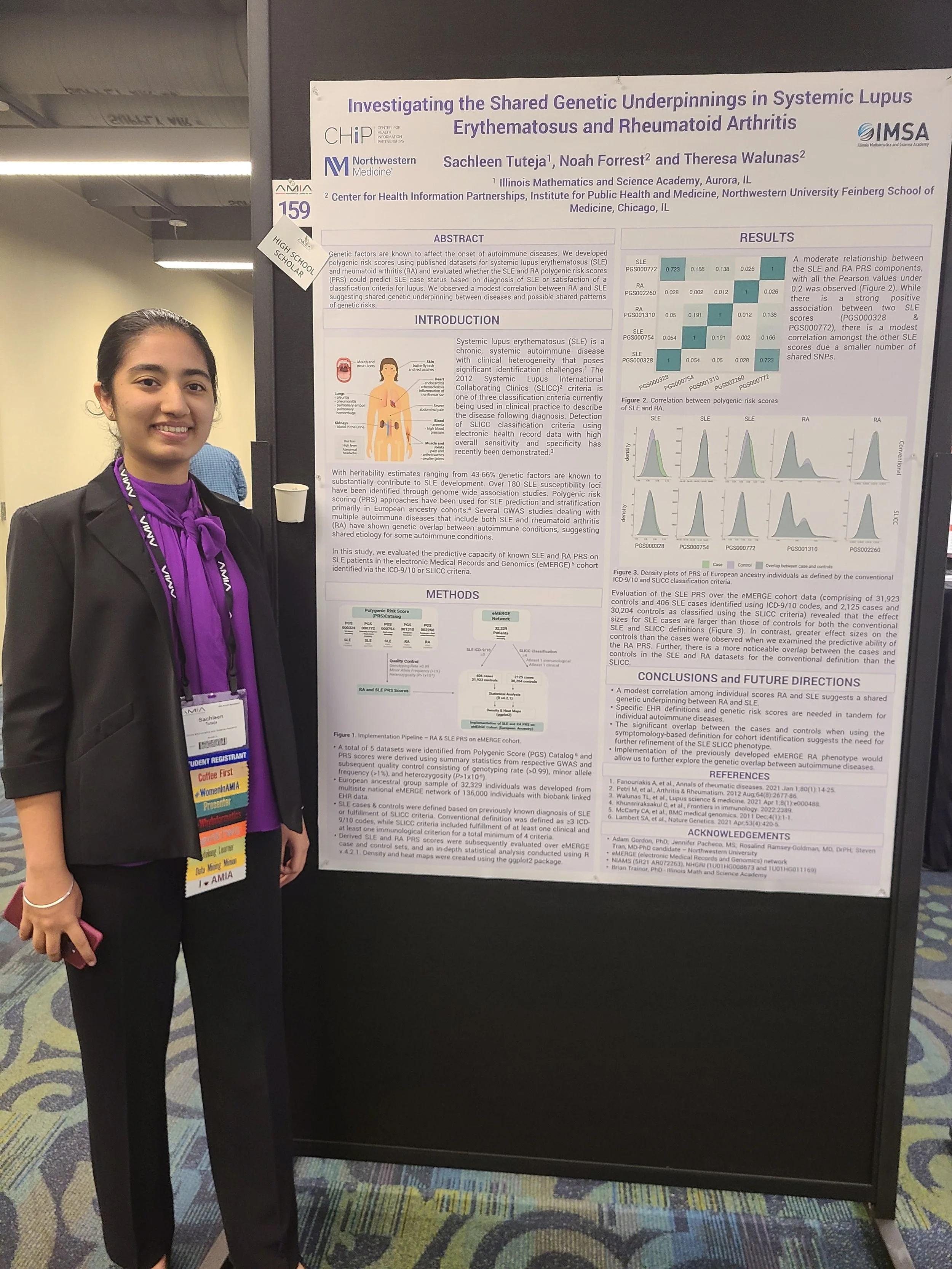 Tuteja, Sachleen, Noah Forrest, and Theresa Walunas. Investigating the shared genetic underpinnings in systemic lupus erythematosus and rheumatoid arthritis. American Medical Informatics Association Annual Symposium, 2022. Available here.